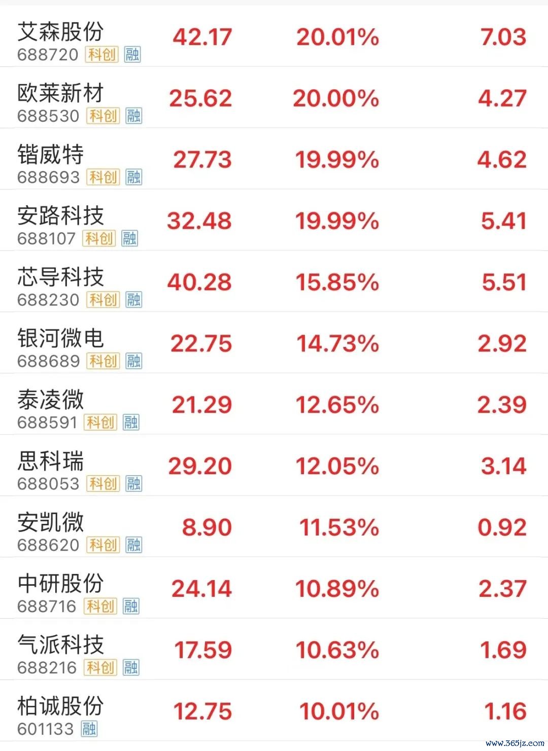 今日早盘,“科特估”行情再度爆发,半导体、PCB、光模块携手走强。截至午间收盘,艾森股份、欧莱新材、康希通信、锴威特、安路科技、必易微、迅捷兴等多股以20%幅度涨停,芯导科技、银河微电、泰凌微、思科瑞、中研股份等涨超10%。